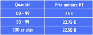 • Prix dégressif selon la quantité commandée.